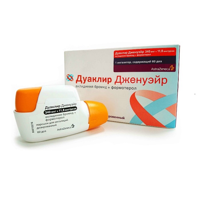 Рекомендуемая доза – одна ингаляция препарата Дуаклир Дженуэйр 340 мкг + 11,8 мкг/доза 2 раза в сутки.