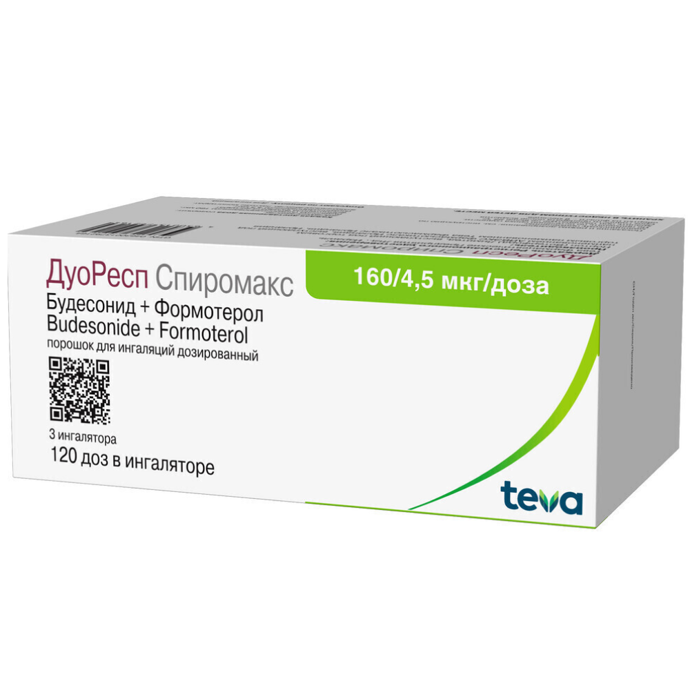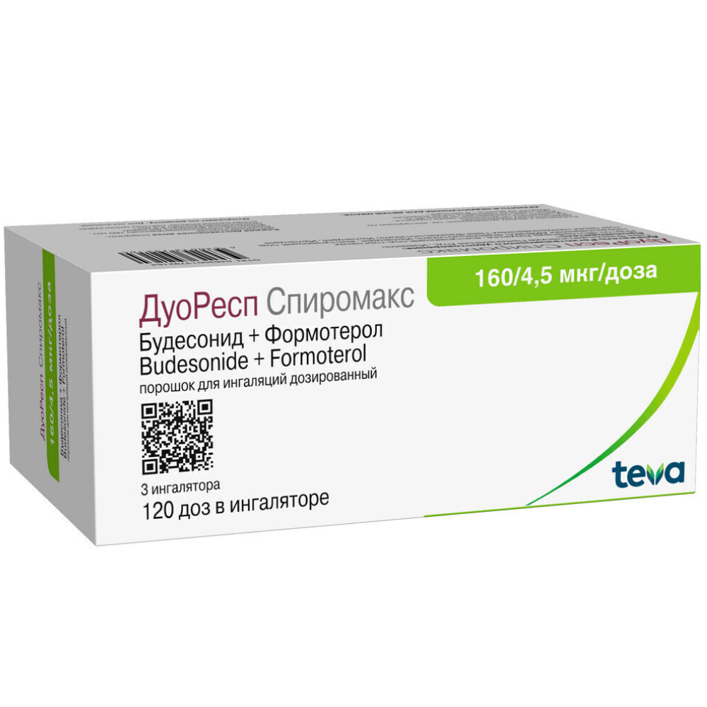 Препарат ДуоРесп Спиромакс содержит формотерол и будесонид, которые имеют разные механизмы действия и проявляют аддитивный эффект в отношении снижения частоты обострений бронхиальной астмы и хронической обструктивной болезни легких (ХОБЛ).