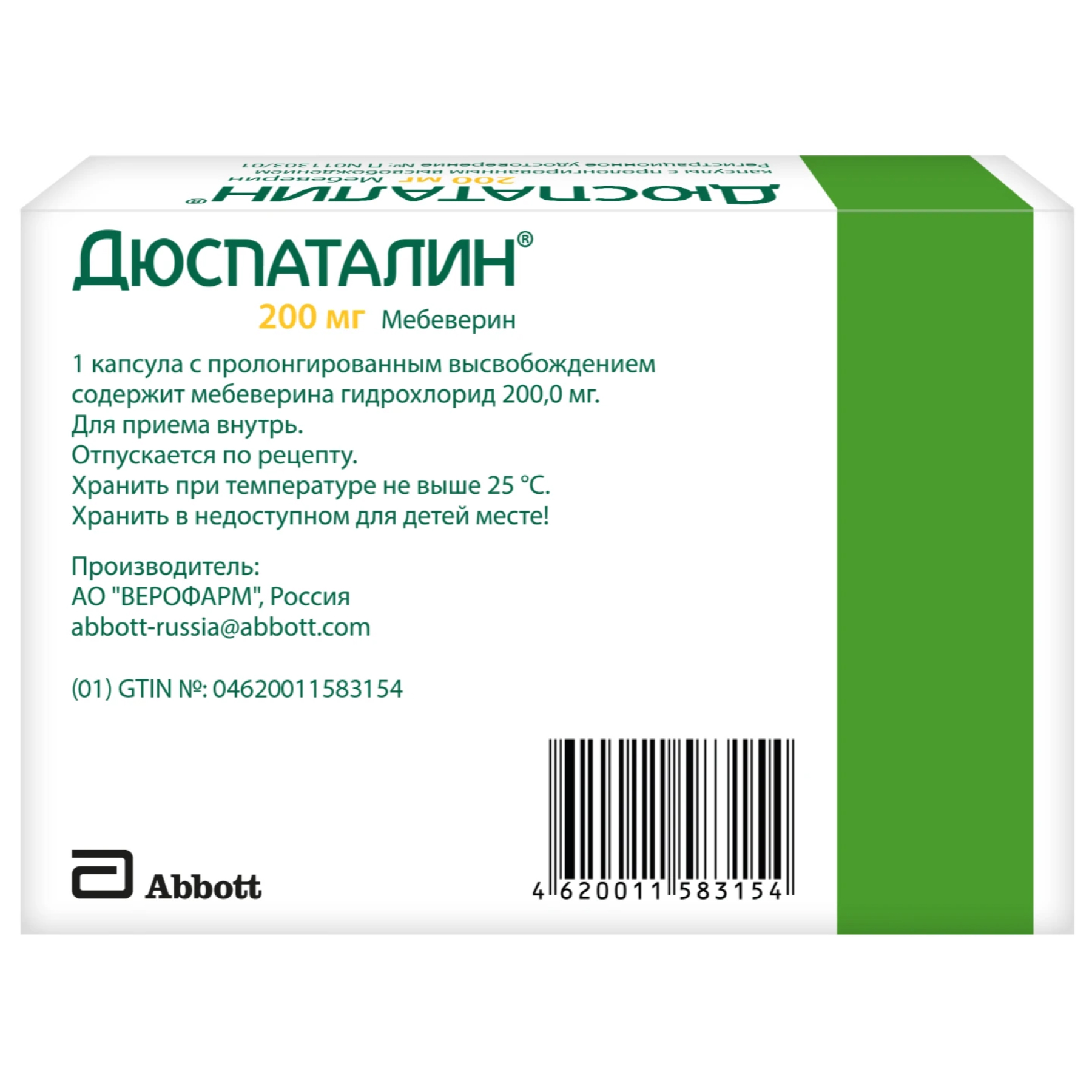 Мебеверин быстро и полностью всасывается после приема внутрь. Лекарственная форма модифицированного высвобождения позволяет использовать схему дозирования 2 раза/сут.