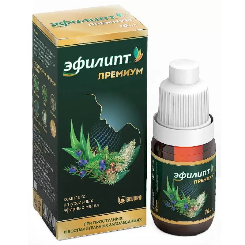 Эфилипт капли является смесью специально отобранных эфирных масел, полученных из лекарственных растений - эвкалипта, перечной мяты, каяпутового дерева, можжевельника, гвоздики.