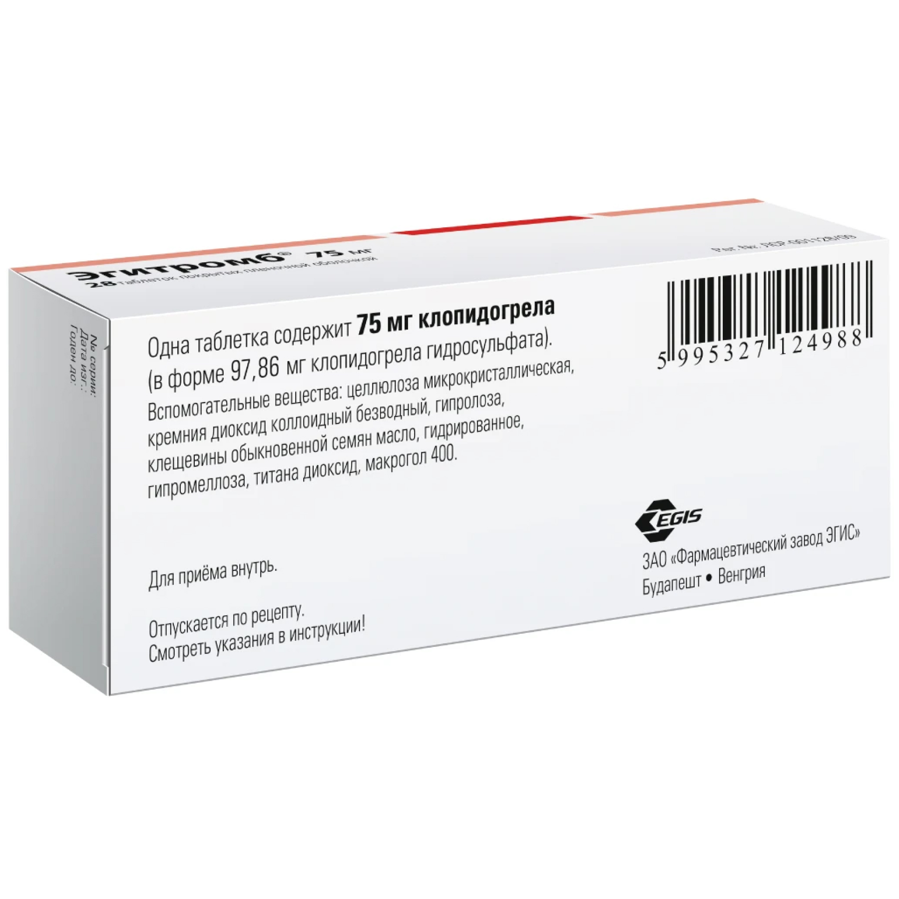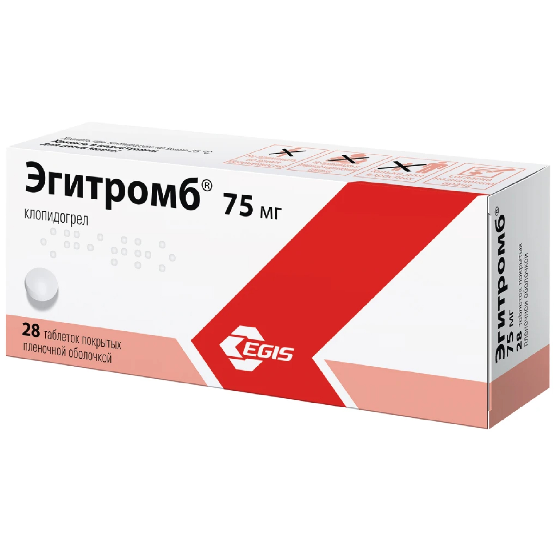 Взрослым и пациентам пожилого возраста Эгитромб® назначают по 75 мг 1 раз/сут.
