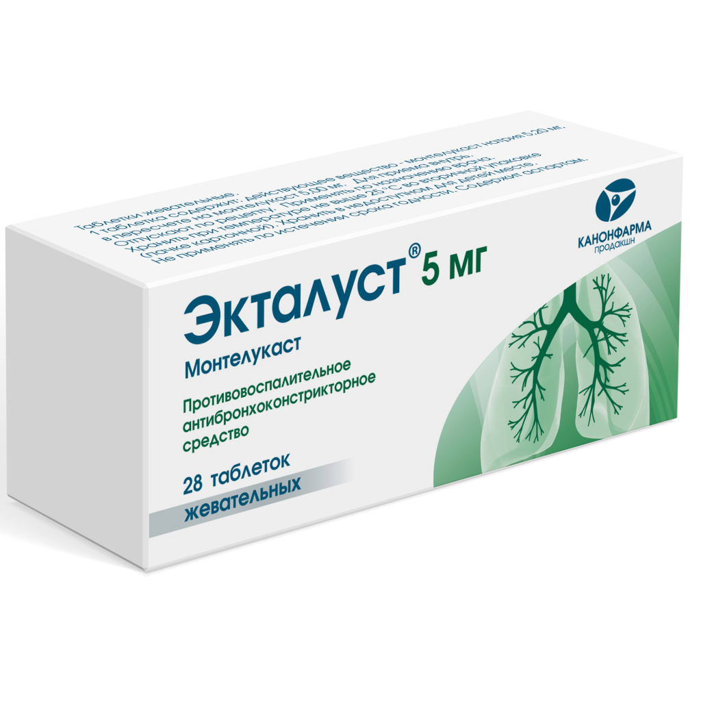 Препарат Экталуст® можно добавлять к лечению бронходилататорами и ингаляционными глюкокортикостероидами (ГКС).