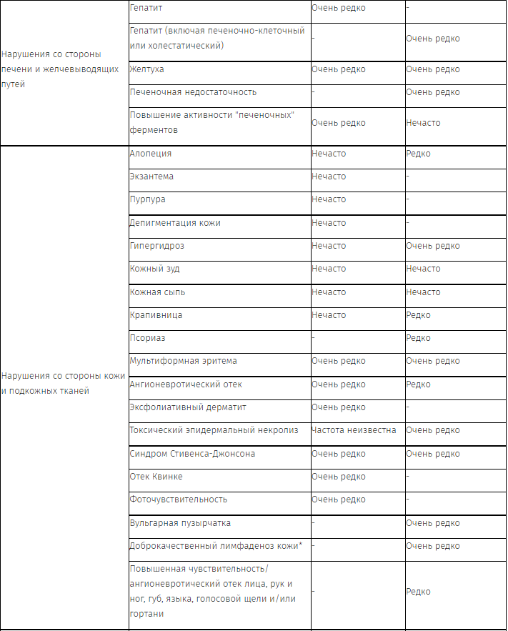 В каждой группе нежелательные реакции представлены в порядке убывания их серьезности.