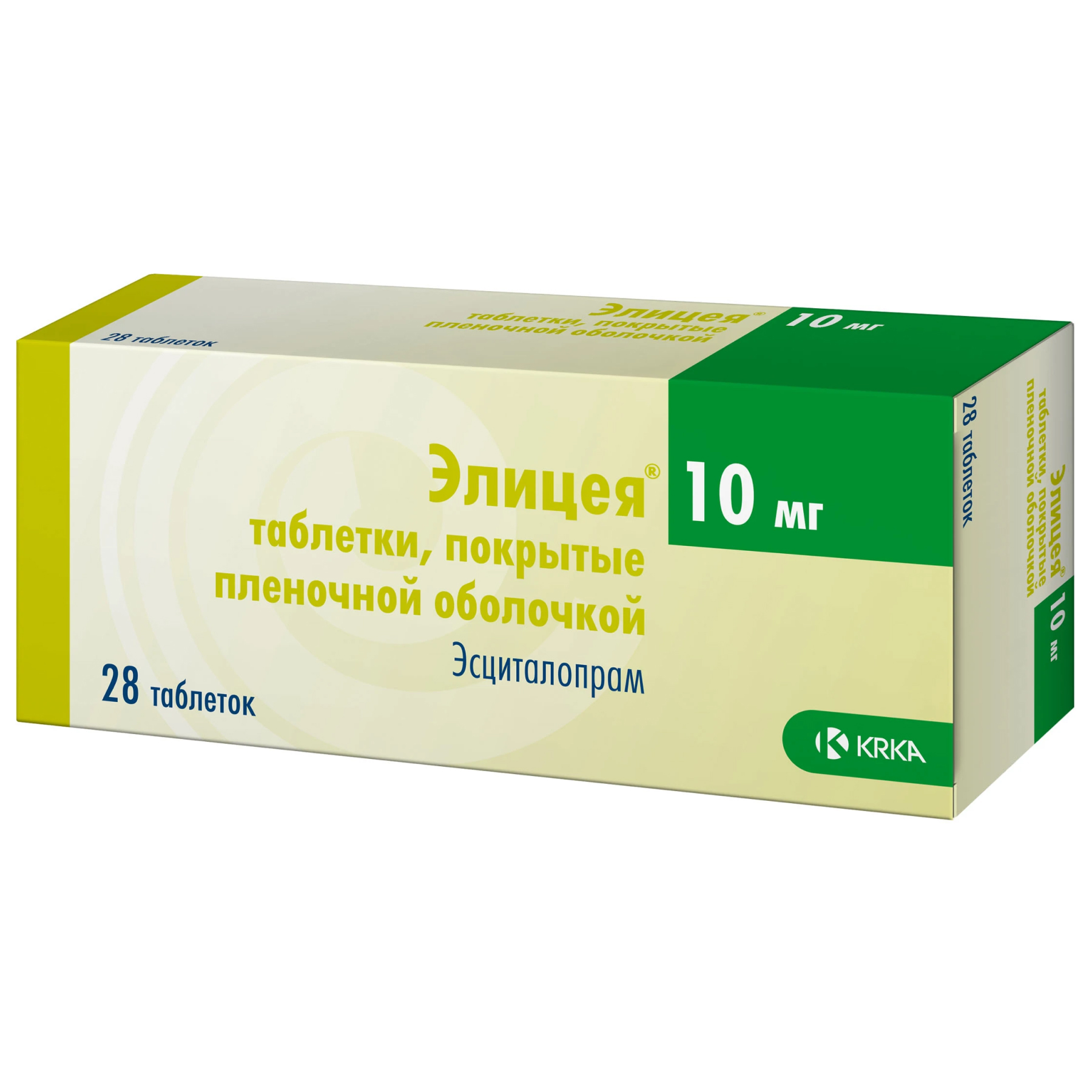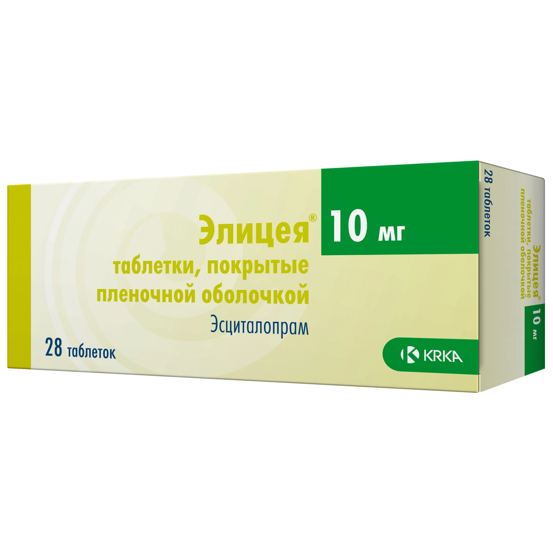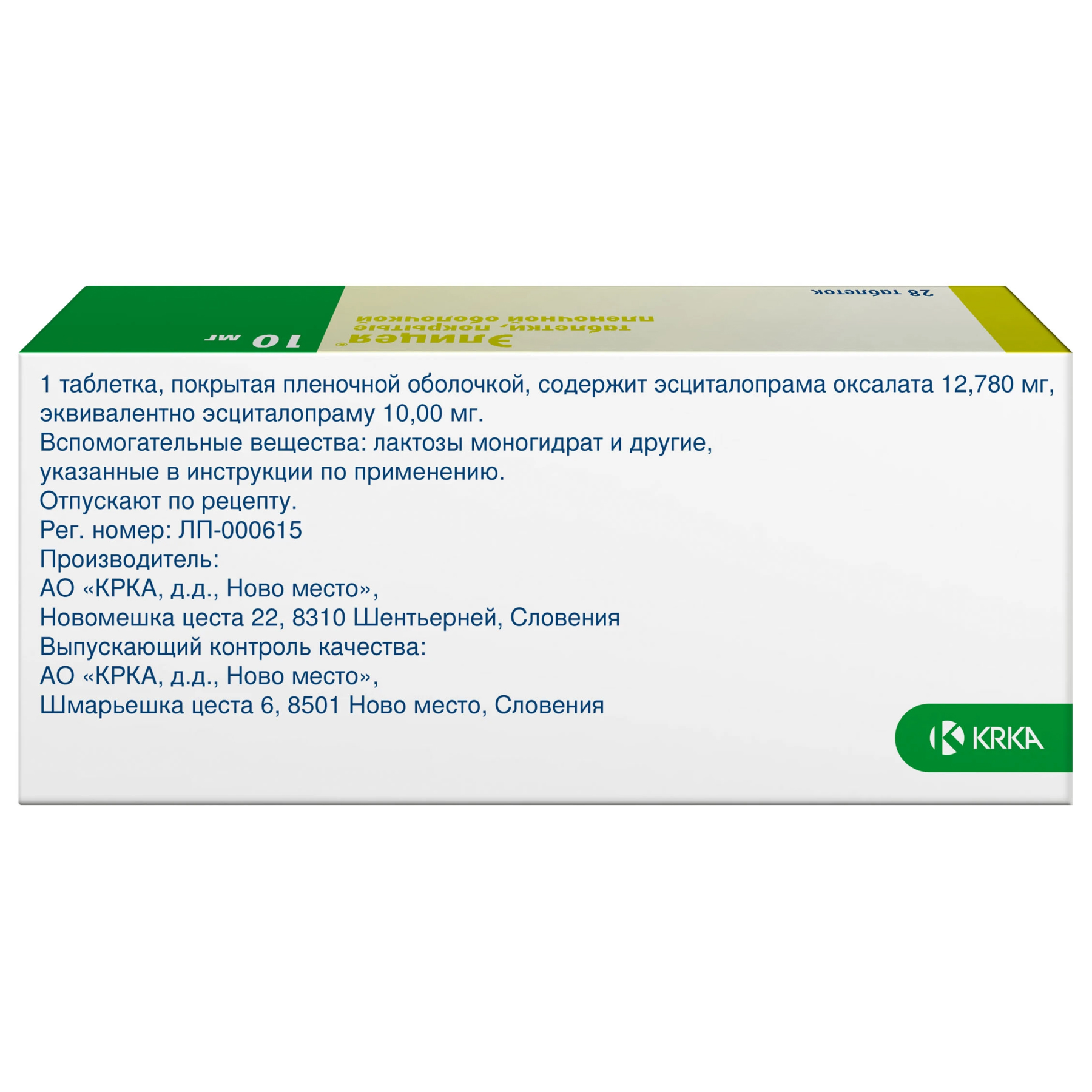 Активное вещество: эсциталопрама оксалат 12.78 мг, что соответствует содержанию эсциталопрама - 10 мг.