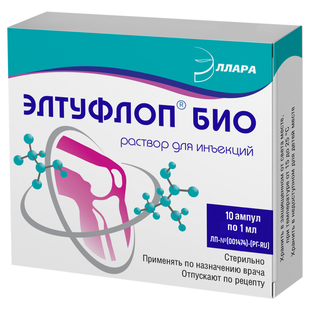 ЭЛТУФЛОП® БИО предотвращает разрушение макромолекулярных структур нормальных тканей, стимулирует процессы восстановления в интерстициальной ткани и в ткани суставного хряща, что объясняет его обезболивающее действие.