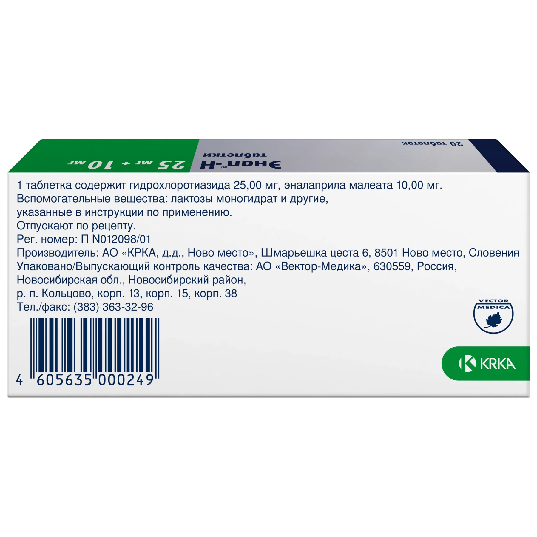 Препарат Энап®-Н содержит лактозу, поэтому препарат противопоказан пациентам с дефицитом лактазы, непереносимостью лактозы, синдромом глюкозо-галактозной мальабсорбции.