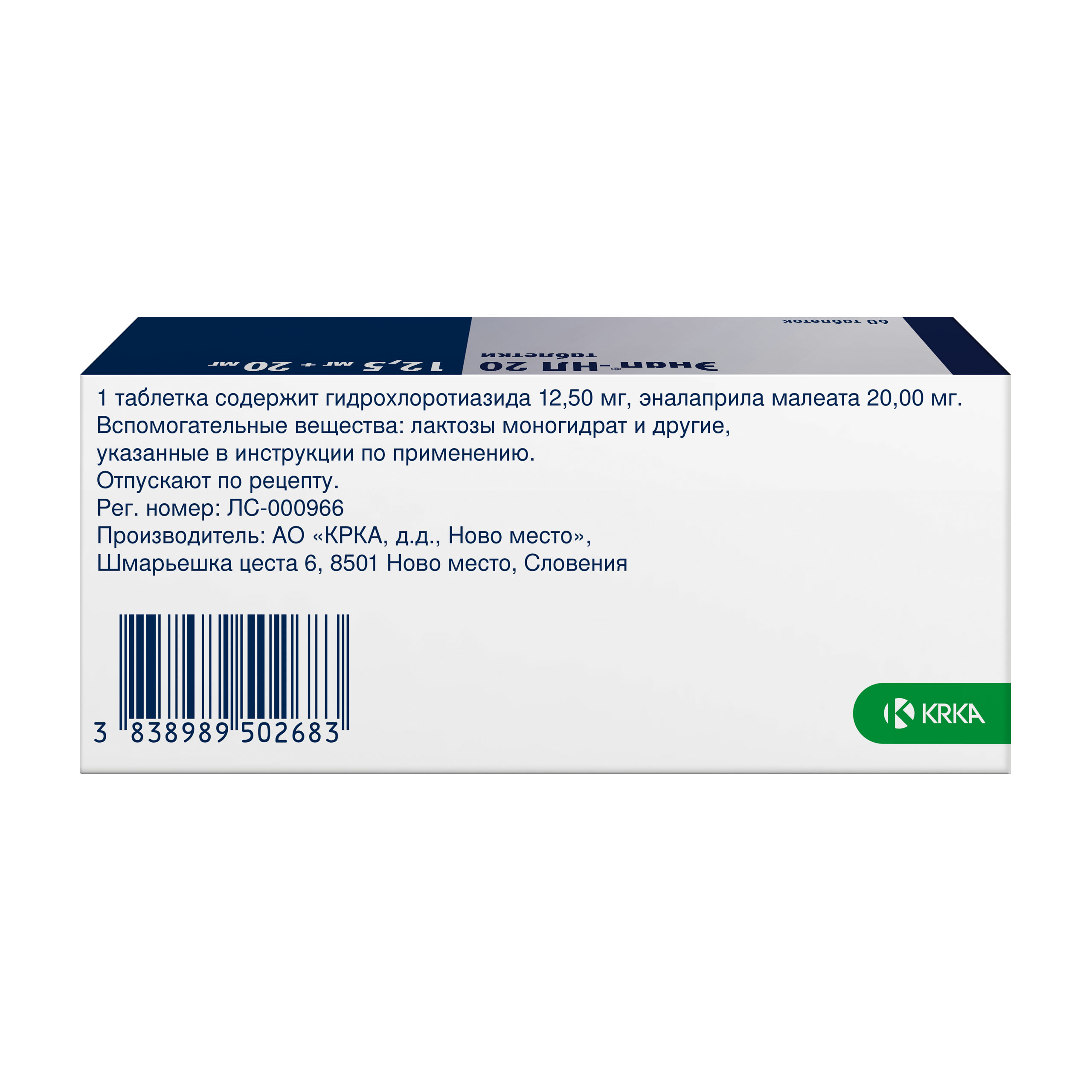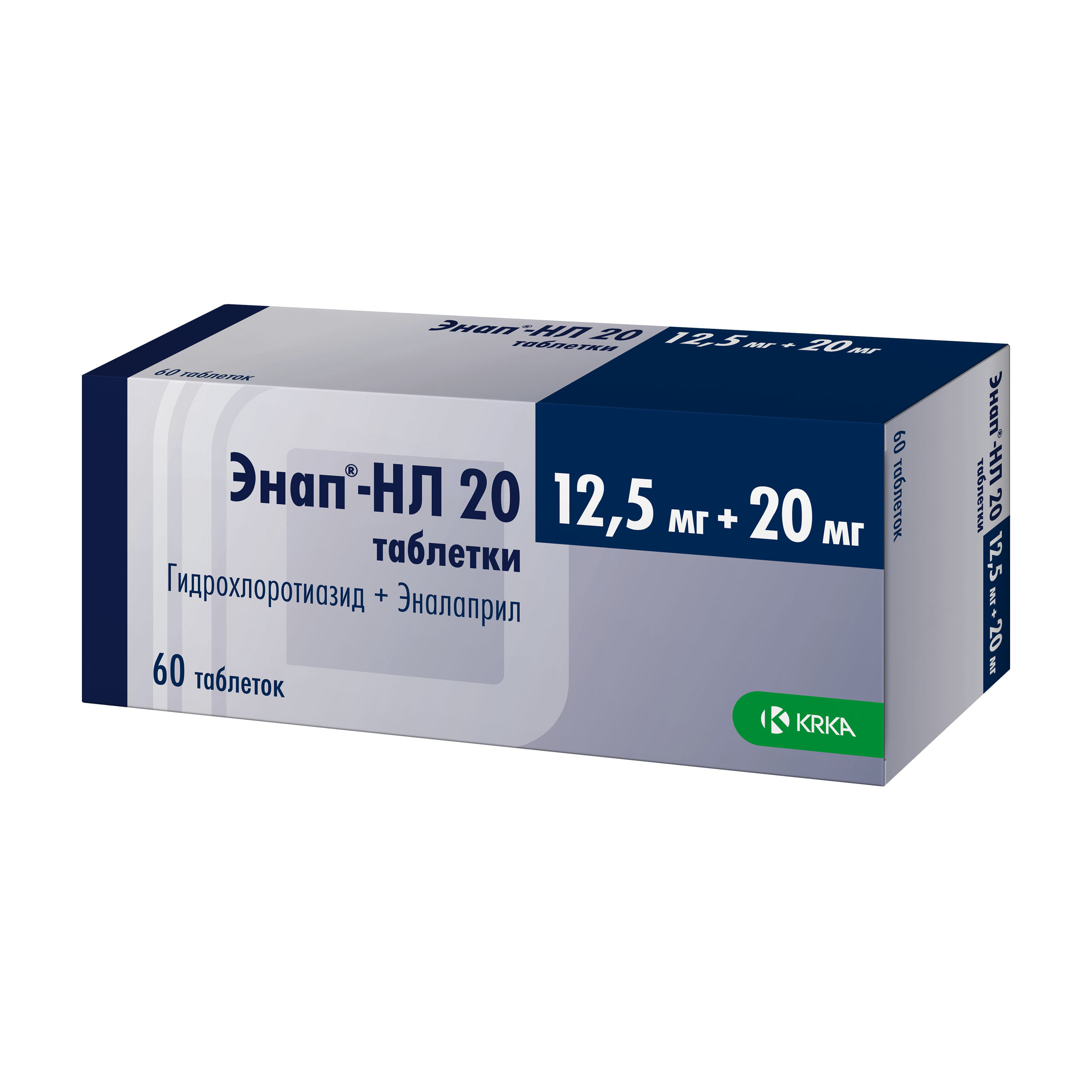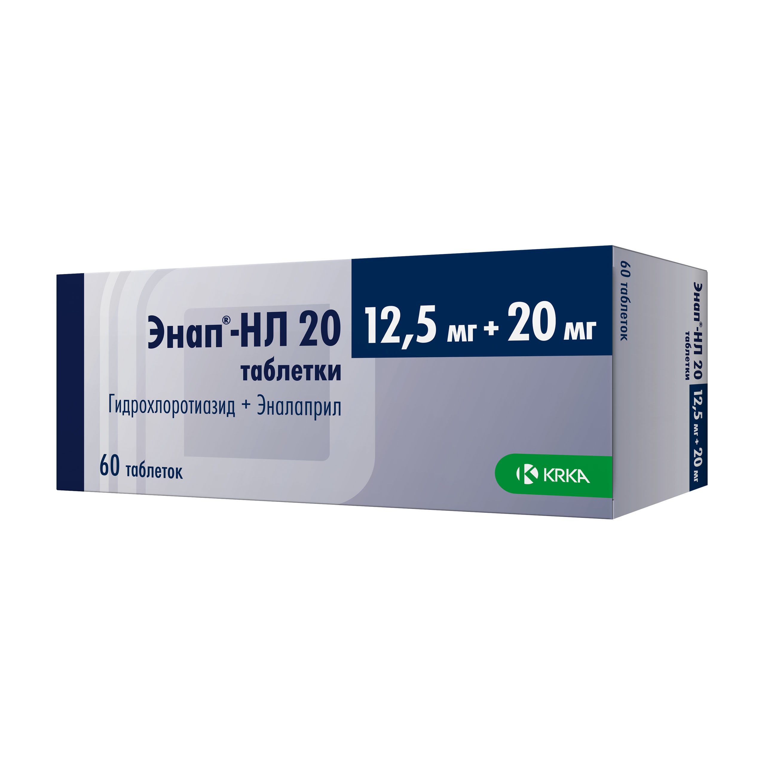 Действующие вещества: эналаприла малеат 20 мг и гидрохлортиазид 12,5 мг;