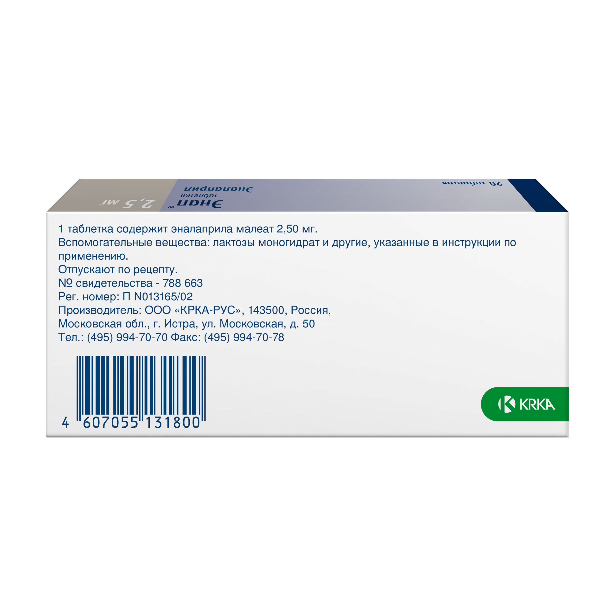 Активное вещество: эналаприла малеат 2.5 мг.