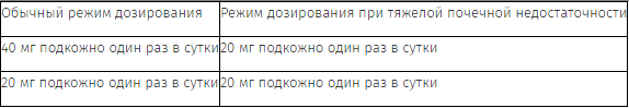 У пациентов с тяжелыми нарушениями функции почек (КК 15-30 мл/мин) доза эноксапарина натрия снижается в соответствии с представленными ниже таблицами, так как у этих пациентов отмечается увеличение системной экспозиции (продолжительности действия) препарата.