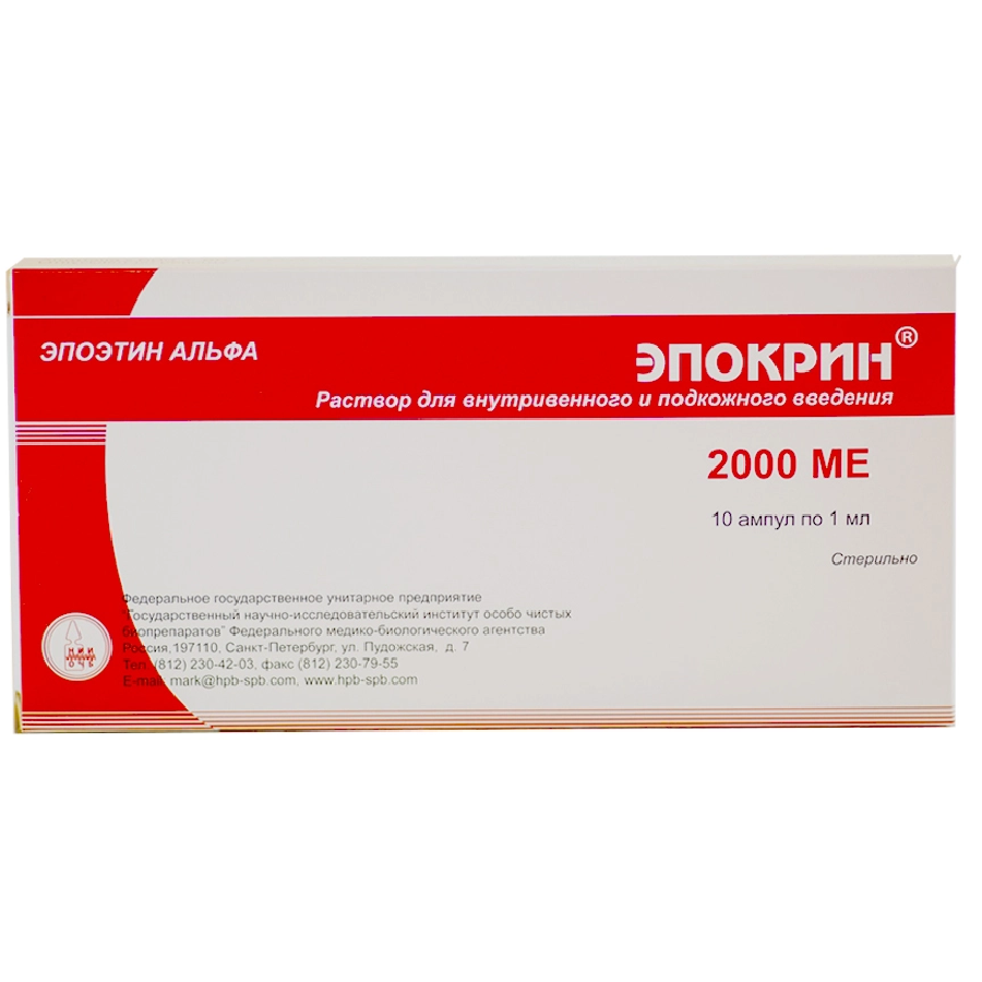 1.Этап коррекции: При подкожном введении препарата Эпокрин®, начальная разовая доза составляет 30 МЕ/кг 3 раза в неделю. При внутривенном введении препарата Эпокрин® начальная разовая доза составляет 50МЕ/кг. Период коррекции длится до момента достижения оптимального уровня гемоглобина (100-120 г/л у взрослых и 95-110 г/л у детей) и гематокрита (30-35 %). Эти показатели необходимо контролировать еженедельно. Возможны следующие ситуации: