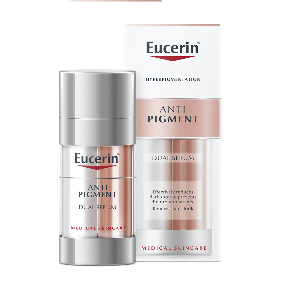 Eucerin ANTI-PIGMENT двойная сыворотка против пигментации содержит два ингредиента, оказывающих различное действие: