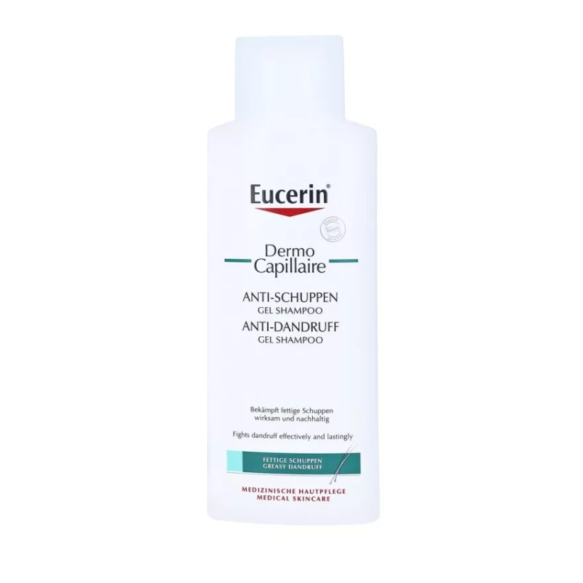 Гель-шампунь против перхоти Eucerin DERMOCAPILLAIRE специально разработан для перхоти жирной кожи головы и себорейного дерматита. Он нежно очищает кожу и волосы от липких желтых чешуек и эффективно снижает и контролирует появление перхоти. Его мягкая формула успокаивает кожу головы и снимает зуд уже после первого мытья, а его специальные кондиционирующие вещества дарят волосам здоровый блеск и делают их мягкими и послушными.
