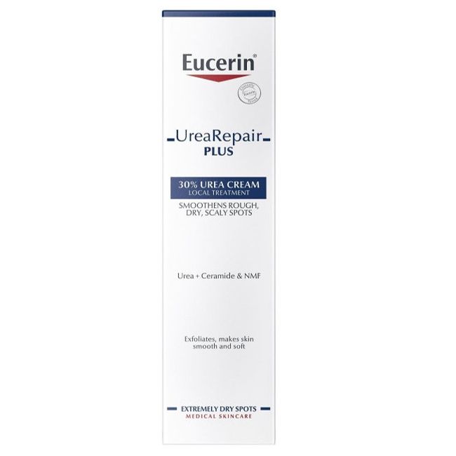 Интенсивно восстанавливающий крем Eucerin UreaRepair с 30% мочевиной подходит для гиперкератозных (т. е. утолщенных) участков кожи. Он также подходит для людей с волосяным кератозом и псориазом. Также может использоваться для дополнительного ухода в сочетании с назначенными дерматологом средствами.