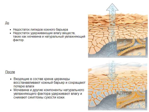 Крем быстро впитывается и подходит как для базового регулярного ухода за кожей рук, так и для использования в качестве дополнительного средства ухода при таких состояниях как псориаз и сахарный диабет.