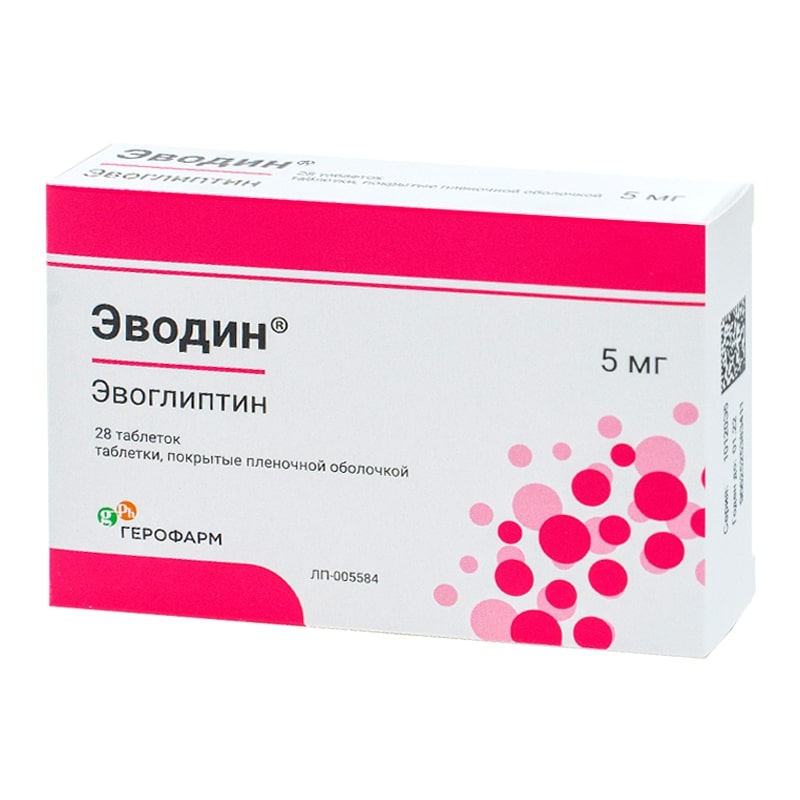 Препарат Эводин® уменьшает разрушение в организме такого вещества, как глюкагоно-подобный полипептид 1 (ГПП-1), который в свою очередь стимулирует секрецию инсулина, что и приводит к снижению уровня глюкозы в крови. Помимо этого, препарат Эводин® снижает образование гормона глюкагона, который препятствует действию инсулина.