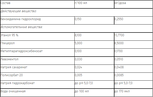 Местно, после еды. Одна доза (одно впрыскивание) соответствует 0,255 мг бензидамина. Взрослым (в т.ч. пациентам пожилого возраста) и детям старше 12 лет по 4-8 впрыскиваний 2-6 раз в сутки. Детям от 6 до 12 лет - по 4 впрыскивания 2-6 раз в день. Детям от 3 до 6 лет по 1 впрыскиванию на каждые 4 кг массы тела, но не более 4 впрыскиваний (максимальная разовая доза) 2-6 раз в день. Не превышать рекомендованную дозу.