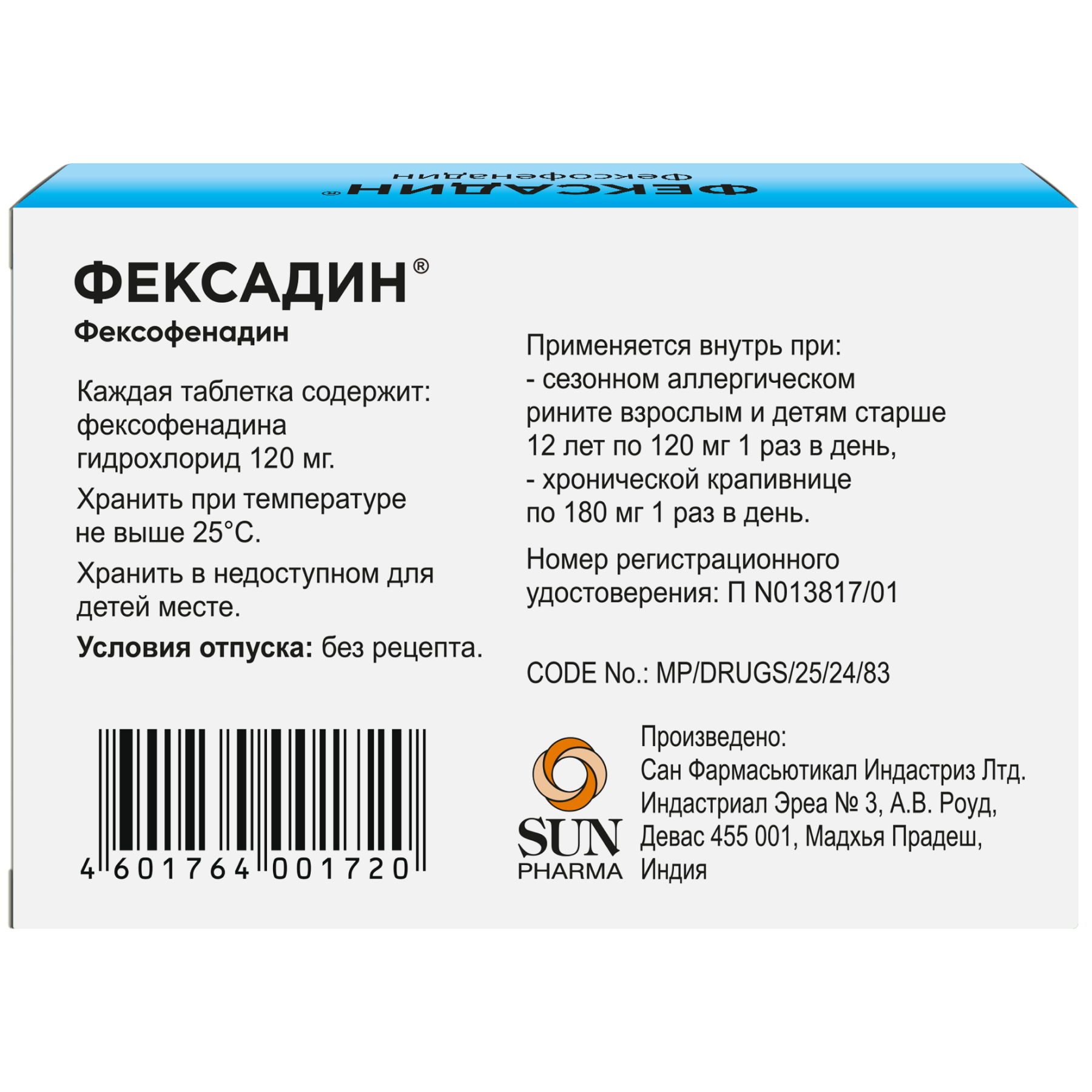 Активное вещество: фексофенадина гидрохлорид 120 мг.