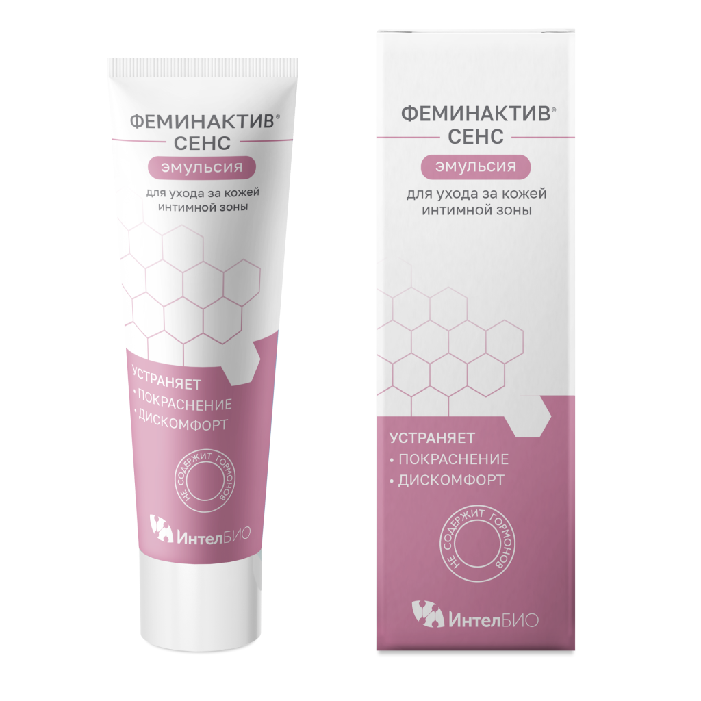 Эмульсия ФЕМИНАКТИВ СЕНС обладает нежной пудровой консистенцией и благодаря особой комбинации компонентов и отсутствию гормонов в составе идеально подходит для улучшения состояния чувствительной кожи в области интимной зоны и для устранения дискомфорта.