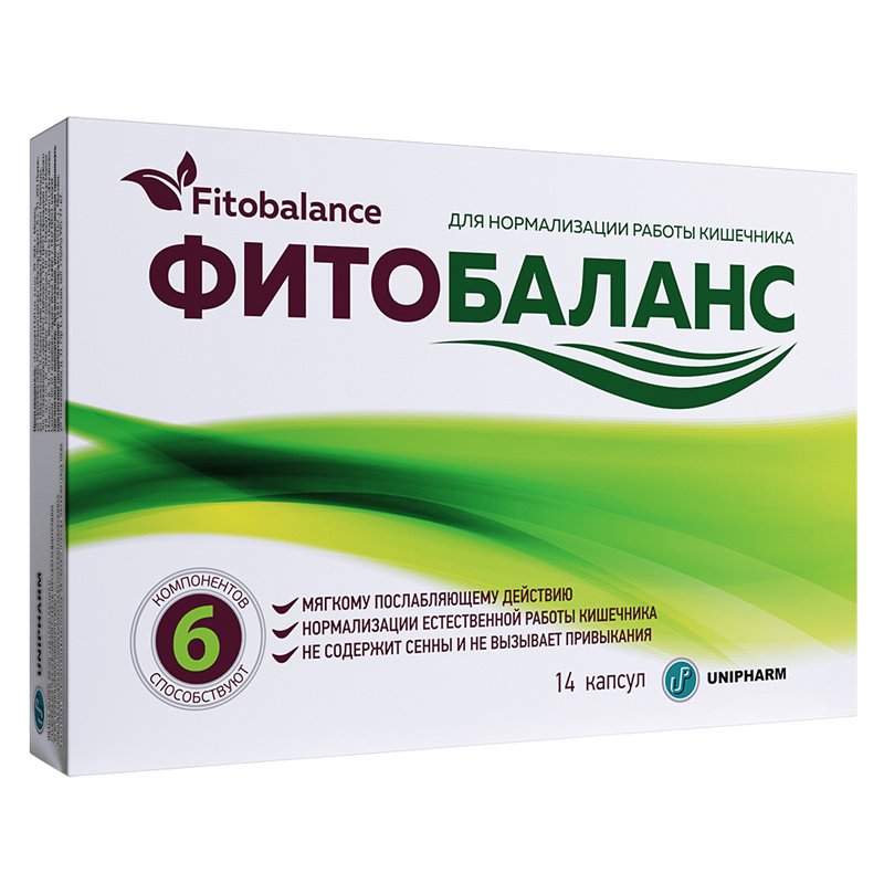 Фитобаланс - комбинация 6 растительных компонентов, обладающих мягким послабляющим действием, для очищения и нормализации естественной работы кишечника.