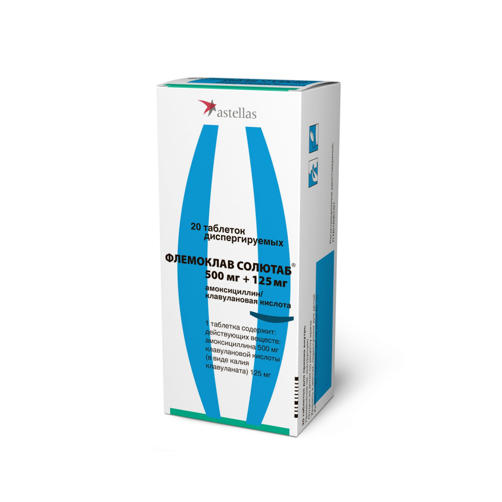 Детям младше 12 лет с массой тела до 40 кг назначают Флемоклав Солютаб® с меньшими дозировками: 125 мг + 31,25 мг; 250 мг + 62,5 мг; 500 мг + 125 мг.
