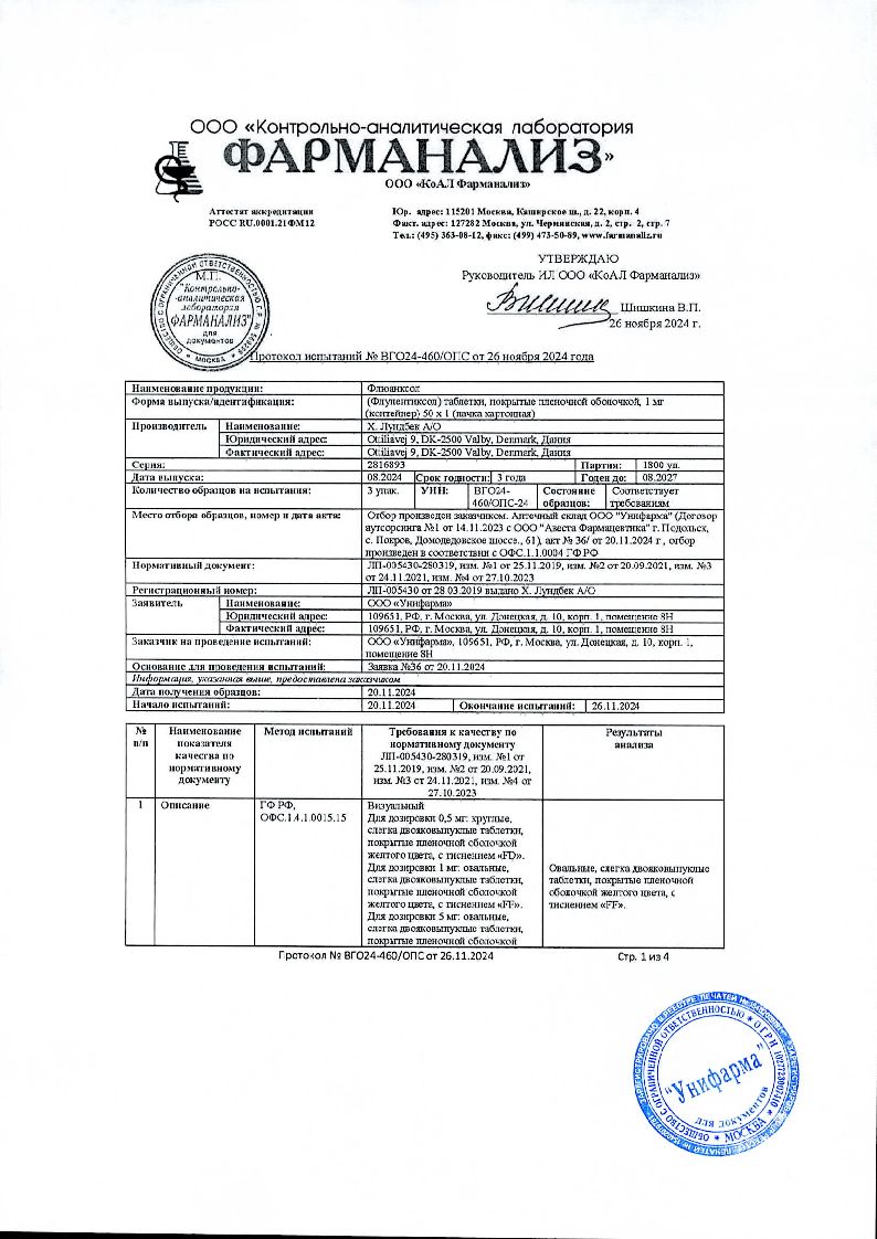 Сертификаты и лицензии “Флюанксол 1 мг 50 шт таблетки покрытые оболочкой”