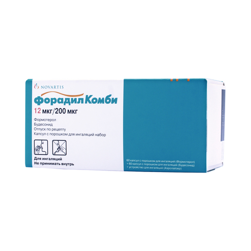 Препарат Форадил Комби представляет собой капсулы с порошком для ингаляций, которые следует применять только с помощью специального устройства - Аэролайзера, который входит в комплект упаковки. Препарат не предназначен для приема внутрь.