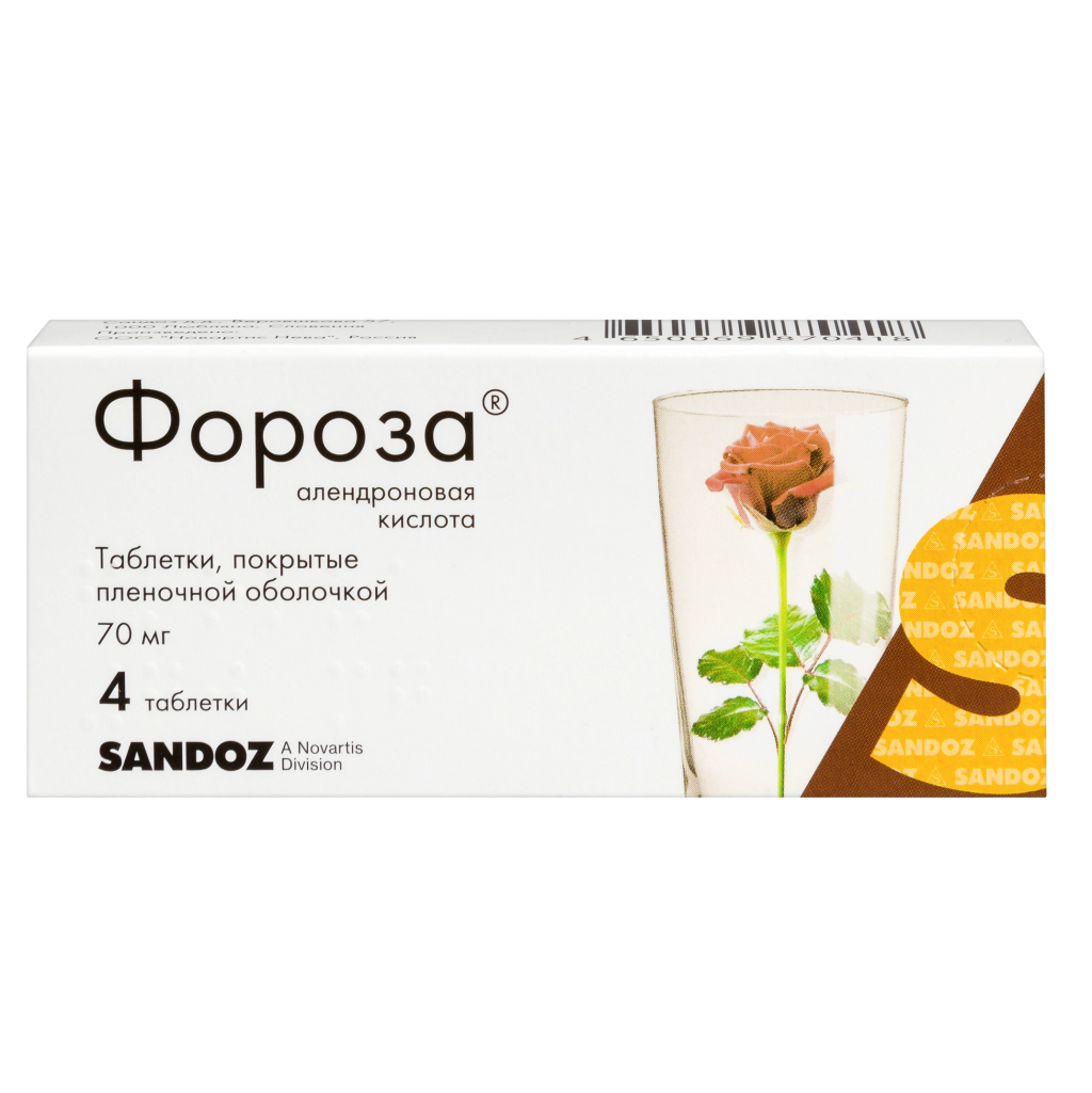 Для обеспечения надлежащего всасывания препарата Фороза® таблетки необходимо принимать утром натощак, не менее чем за 30 мин до первого приема пищи, напитков или других лекарственных препаратов, запивая стаканом обычной воды (не менее 200 мл). Другие напитки (включая минеральную воду) могут снизить всасывание препарата.