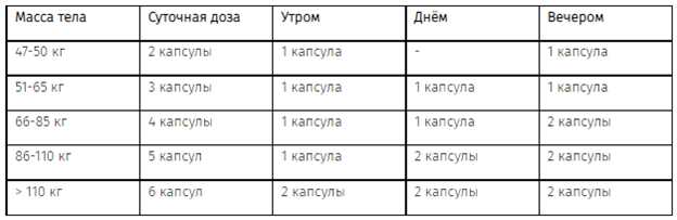 Суточная доза зависит от массы тела и составляет от 2 до 6 капсул (примерно от 10 до 15 мг урсодезоксихолевой кислоты на 1 кг массы тела).