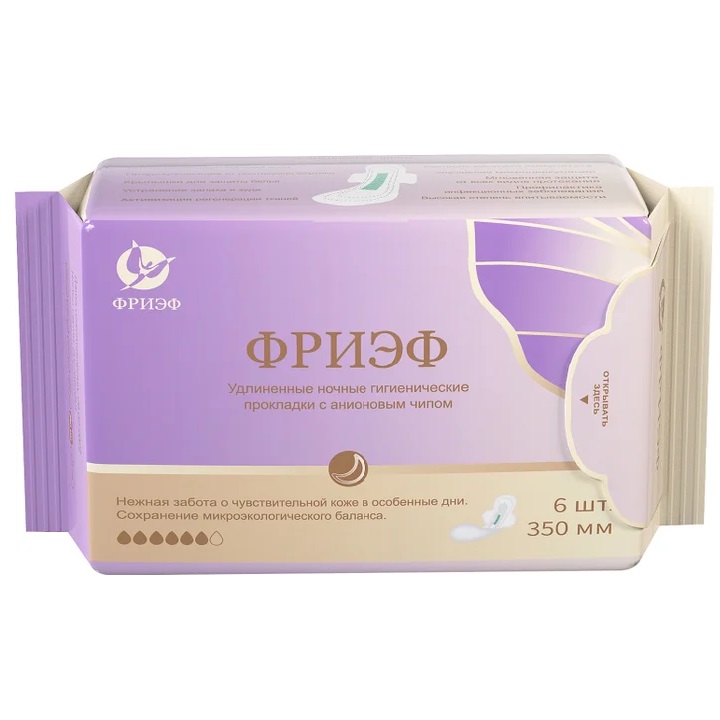 Прокладки Фриэф удлиненные ночные с анионовым чипом 350мм 6шт – это инновационные гигиенические средства, созданные с использованием новейших японских технологий с учетом многовекового опыта традиционной китайской медицины. Производятся из премиальных «дышащих» материалов, обладают высокой степенью впитываемости, устраняют неприятные запахи, помогают сохранить здоровье и микроэкологический баланс интимной зоны.