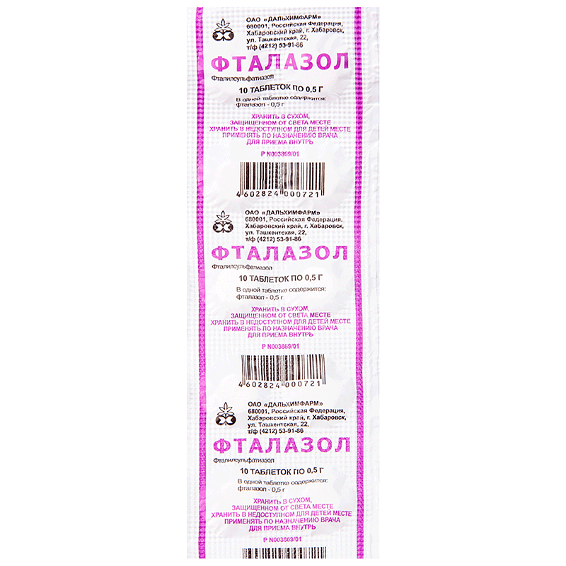Активное вещество: фталилсульфатиазол - 500 мг