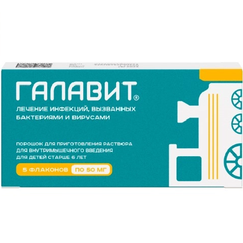 При гнойных хирургических заболеваниях (ожоговых поражениях, рецидивирующем фурункулезе, хроническом остеомиелите, гангренозном аппендиците с оментитом, перитоните, гнойном плеврите): детям от 6 до 11 лет по одной инъекции 50 мг ежедневно - 5 дней, затем по одной инъекции 50 мг через день в течение 10-15 дней. Курс 10-15 инъекций; детям в возрасте 12-18 лет - лечение проводится по той же схеме в виде внутримышечных инъекций по 100 мг. При перевязках желательно наружное применение галавита в виде повязок со стерильными салфетками, смоченными 1 %-м раствором галавита в воде для инъекций (в повязки с болтушкой или водорастворимые мазевые повязки).