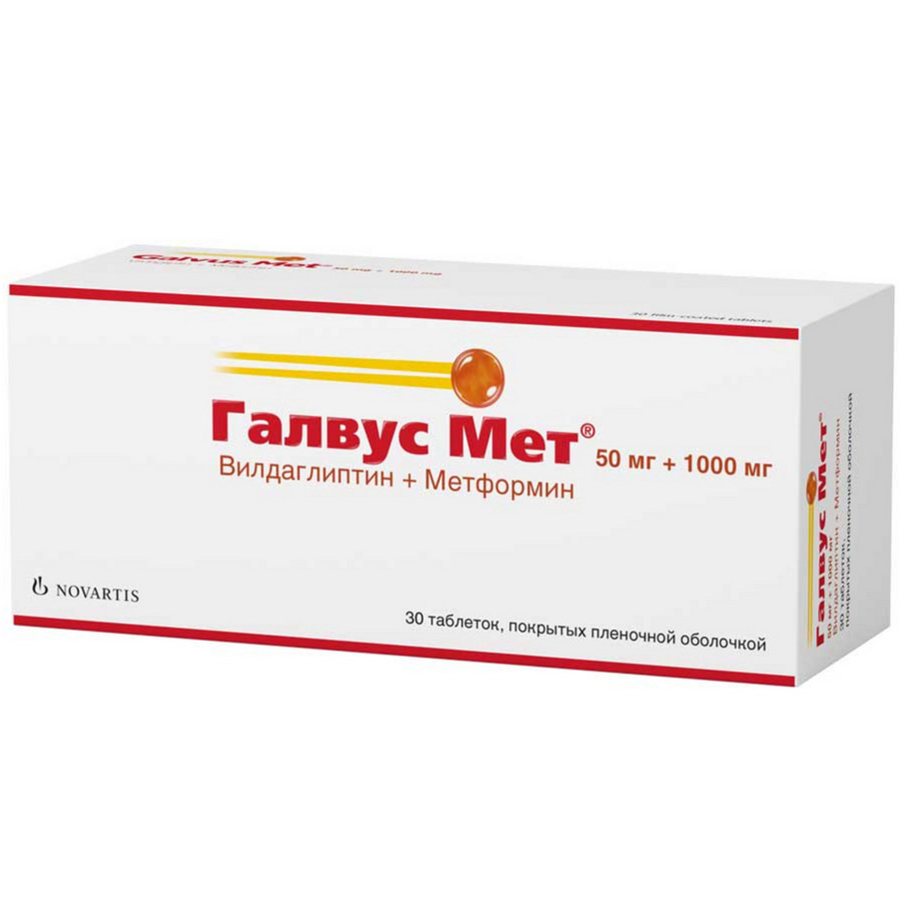 При приеме внутрь натощак вилдаглиптин быстро всасывается, а его Сmах достигается через 1.75 ч после приема. При одновременном приеме с пищей скорость абсорбции вилдаглиптина снижается незначительно: отмечается уменьшение Сmах на 19% и увеличение времени ее достижения до 2.5 ч. Однако прием пищи не оказывает влияния на степень всасывания и AUC. Вилдаглиптин быстро всасывается, а его абсолютная биодоступность после приема внутрь составляет 85%. Сmах и AUC в терапевтическом диапазоне доз увеличиваются примерно пропорционально дозе. Степень связывания вилдаглиптина с белками плазмы крови низкая (9.3%). Препарат распределяется равномерно между плазмой и эритроцитами. Распределение вилдаглиптина происходит предположительно экстраваскулярно, после в/в введения Vss составляет 71 л. В организме человека метаболизируется 69% дозы вилдаглиптина. Основной метаболит, LAY151 (57% дозы), фармакологически неактивен и является продуктом гидролиза циано-компонента. Около 4% дозы подвергается амидному гидролизу. В исследованиях in vivo у животных с дефицитом ДПП-4 отмечается частичное положительное влияние данного фермента на гидролиз вилдаглиптина. После приема внутрь меченного радиоактивной меткой вилдаглиптина около 85% дозы выводится почками и 15% через кишечник, почечная экскреция неизмененного вилдаглиптина составляет 23%. При в/в введении у здоровых добровольцев средний Т1/2 достигает 2 ч, общий плазменный клиренс и почечный клиренс вилдаглиптина составляют 41 л/ч и 13 л/ч соответственно. Т1/2 после приема внутрь составляет около 3 ч независимо от дозы.