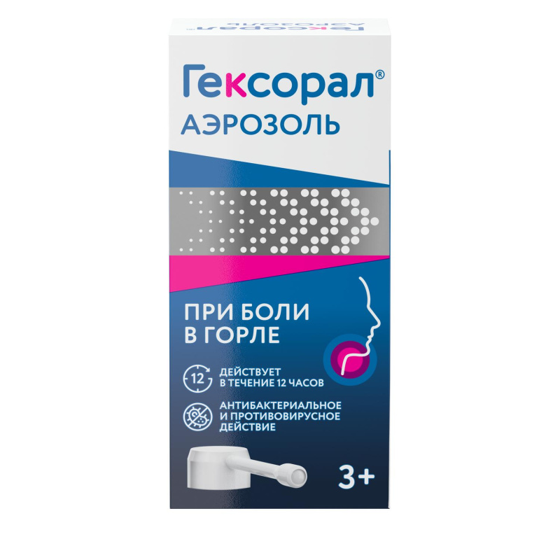 Гексорал® - это современное средство от боли в горле для взрослых и детей с 3-х лет, созданое для терапии симптомов таких заболеваний, как ОРЗ, ОРВИ, фарингит, тонзиллит и ангина, стоматит, пародонтоз, грибковые заболевания, а также гигиена полости рта, в т. ч. и для устранения неприятного запаха изо рта. Гексорал® способен бороться с большинством типов распространенных возбудителей инфекционных заболеваний полости рта и глотки: вирусами, бактериями, грибами и биопленками (1). Гексорал® проникает в очаг инфекции через 1-2 секунды (2). ОСНОВНЫЕ ПРЕИМУЩЕСТВА Линейка Гексорал® включает в себя: аэрозоль, раствор для полоскания полости рта и таблетки для рассасывания. Аэрозоль обладает антисептическим, противовирусным и противомикробным свойством. Гексорал® проникает в очаг инфекции через 1-2 секунды (2) и подходит для лечения боли в горле любой интенсивности взрослым и детям с 3х лет. Подходит для лечения боли в горле, простуды, першения, фарингита, тонзиллита, ангины. Семейный формат: Гексорал в семейной упаковке с 4 индивидуальными насадками. Теперь каждый член семьи, вне зависимости от возраста, точно будет знать и не перепутает «свою» насадку, а это значит, что при применении спрея инфекция не распространится от одного к другому. Европейское качество лекарства от боли в горле. Гексорал — оригинальный препарат, с проверенным качеством, который производится во Франции. ДРУГОЕ В состав препарата входят: Гексэтидин рекомендован (3) как средство для лечения детей с острым тонзиллитом Способ применения: Гексорал® распыляют в полости рта или глотке. С помощью аэрозоля можно легко и быстро обработать пораженные участки. Необходимо выполнить следующие действия: 1. Для начала наденьте на аэрозольный баллон насадку- распылитель и направьте ее конец на пораженный участок полости рта или глотки. 2. Обязательно держите флакон в вертикальном положении во время введения препарата. 3. Задержите ненадолго дыхание, надавите на головку насадки-распылителя и удерживайте ее в таком положении в течение 1–2 секунд. Это время соответствует введению однократной дозы препарата. 4. Если специалист не дал иных рекомендаций, средство применяется 2 раза в день – утром и вечером. 5. Длительность лечения должен определить специалист. ССЫЛКИ 1. Еще раз о термине «вирусно-бактериальная инфекция», А.С. Полякова, к.м.н. В.К. Таточенко, д.м.н., профессор, Научный центр здоровья детей, г. Москва, Медицинский совет, 2015 № 14 2. Согласно инструкции, аэрозоль распыляется в течение 1-2 секунд. Не является временем действия на симптомы. 3. Клинические рекомендации «Острый тонзиллит у детей», 2016 г.