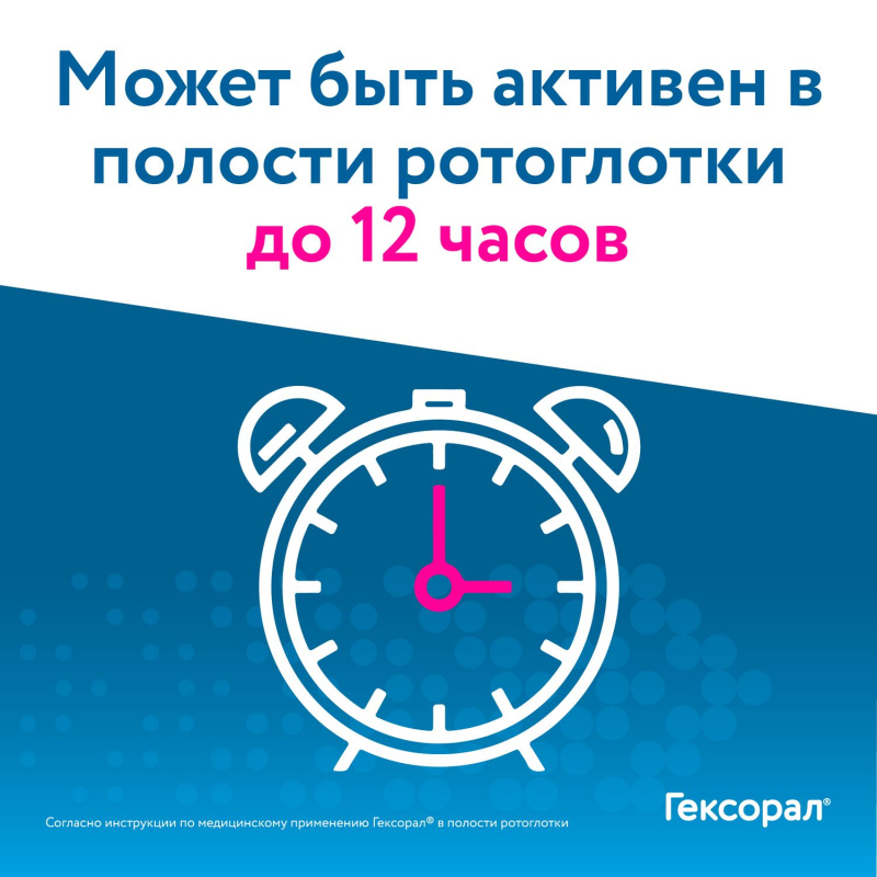 Противомикробное действие препарата «Гексорал®» связано с подавлением окислительных реакций метаболизма бактерий (антагонист тиамина). Препарат обладает широким спектром антибактериального и противогрибкового действия, в частности в отношении грамположительных бактерий и грибов рода Candida, однако препарат «Гексорал®» может также оказывать эффект при лечении инфекций, вызванных, например, Pseudomonas aeruginosa или Proteus spp. В концентрации 100 мг/мл препарат подавляет большинство штаммов бактерий. Развитие устойчивости не наблюдалось. Гексэтидин оказывает слабое анестезирующее действие на слизистую оболочку. Препарат обладает противовирусным действием в отношении вирусов гриппа А, респираторно-синцитиального вируса (РС-вирус), вируса простого герпеса 1-го типа, поражающих респираторный тракт.