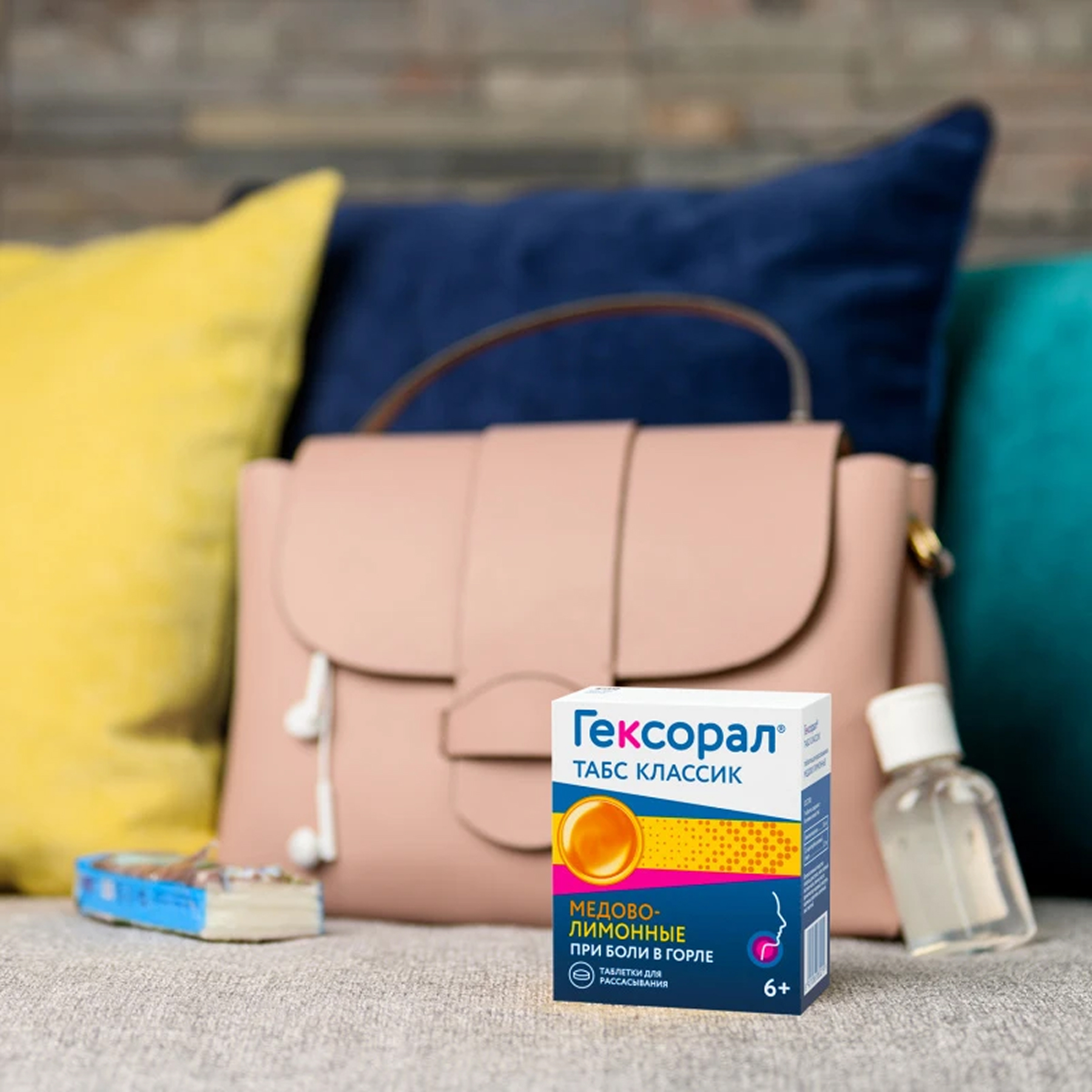Таблетки для рассасывания Гексорал® табс Классик медово-лимонные направлены на ослабление боли в горле. Рекомендуется применять при первых симптомах боли в горле, а также при першении. Дополнительные компоненты аниса, лимона, апельсина и масла мяты, входящие в состав, дают приятный, освежающий вкус.
