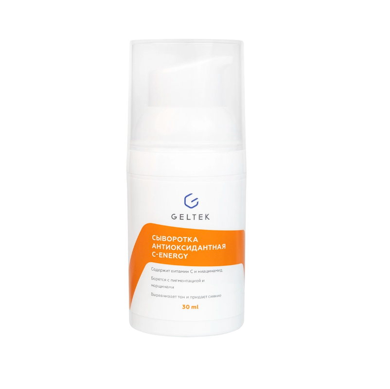Антиоксидантная сыворотка С-Energy станет идеальным средством для всех городских жителей и любителей солнца. Высокоэффективная антиоксидантная сыворотка с 5%-ным витамином С, находящемся в двух стабильных формах, таких как инкапсулированный в липосомах аскорбил пальмитат и аскорбил глюкозид. Также средство содержит ресвератрол 3% , феруловую кислоту 0,5%, ниацинамид 5%, фосфолипидный комплекс с дигидрокверцетином 3%.