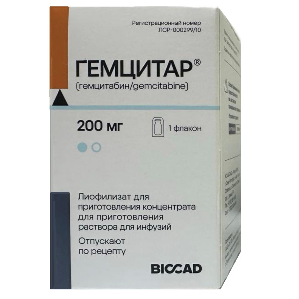 действующее вещество: гемцитабина гидрохлорид (эквивалентно 200 мг или 1000 мг гемцитабина);