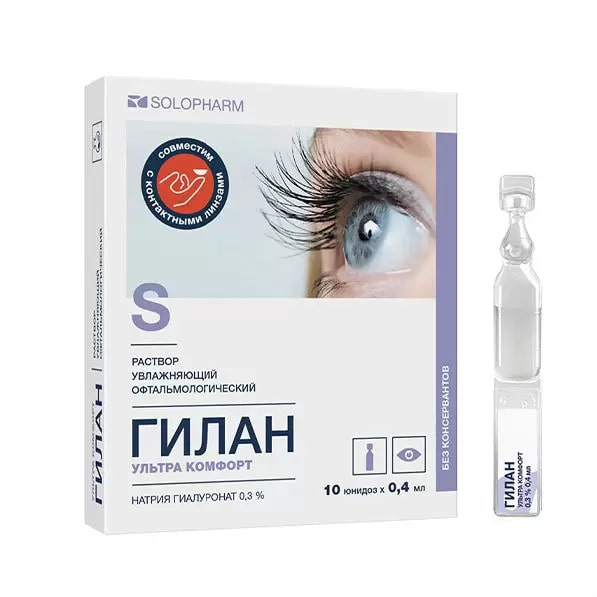 Офтальмологический увлажняющий раствор Гилан Ультра комфорт закапывают по 1 -2 капли в конъюнктивальный мешок, по мере необходимости до 6 раз в сутки.