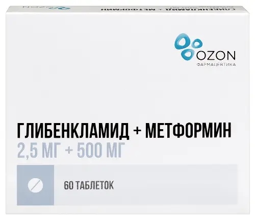 Глибенкламид относится к группе производных сульфонилмочевины II поколения. Содержание глюкозы при приеме глибенкламида снижается в результате стимуляции секреции инсулина β-клетками поджелудочной железы. Метформин и глибенкламид имеют различные механизмы действия, но взаимно дополняют гипогликемическую активность друг друга. Комбинация двух гипогликемических средств имеет синергический эффект в отношении снижения содержания глюкозы в крови.