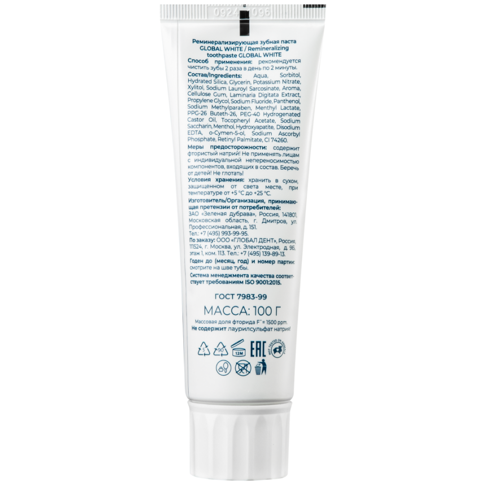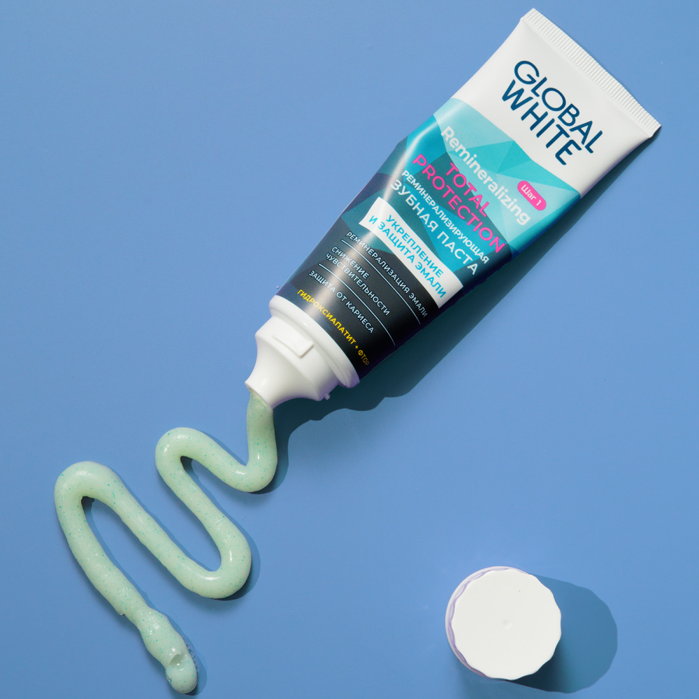 Реминерализирующая зубная паста с гидроксиапатитом и экстрактом ламинарии для укрепления эмали, снижения и предотвращения чувствительности.