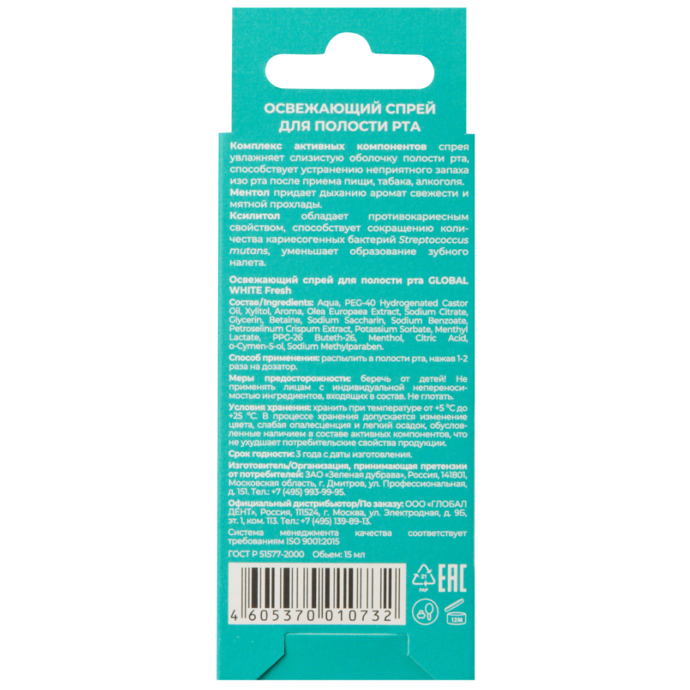 Освежающий спрей для полости рта - компактный и удобный аксессуар, заменяющий несколько упаковок жевательной резинки. Не содержит спирт, который приводит к сухости и, как следствие, неприятному запаху изо рта. Со вкусом освежающей мяты.
