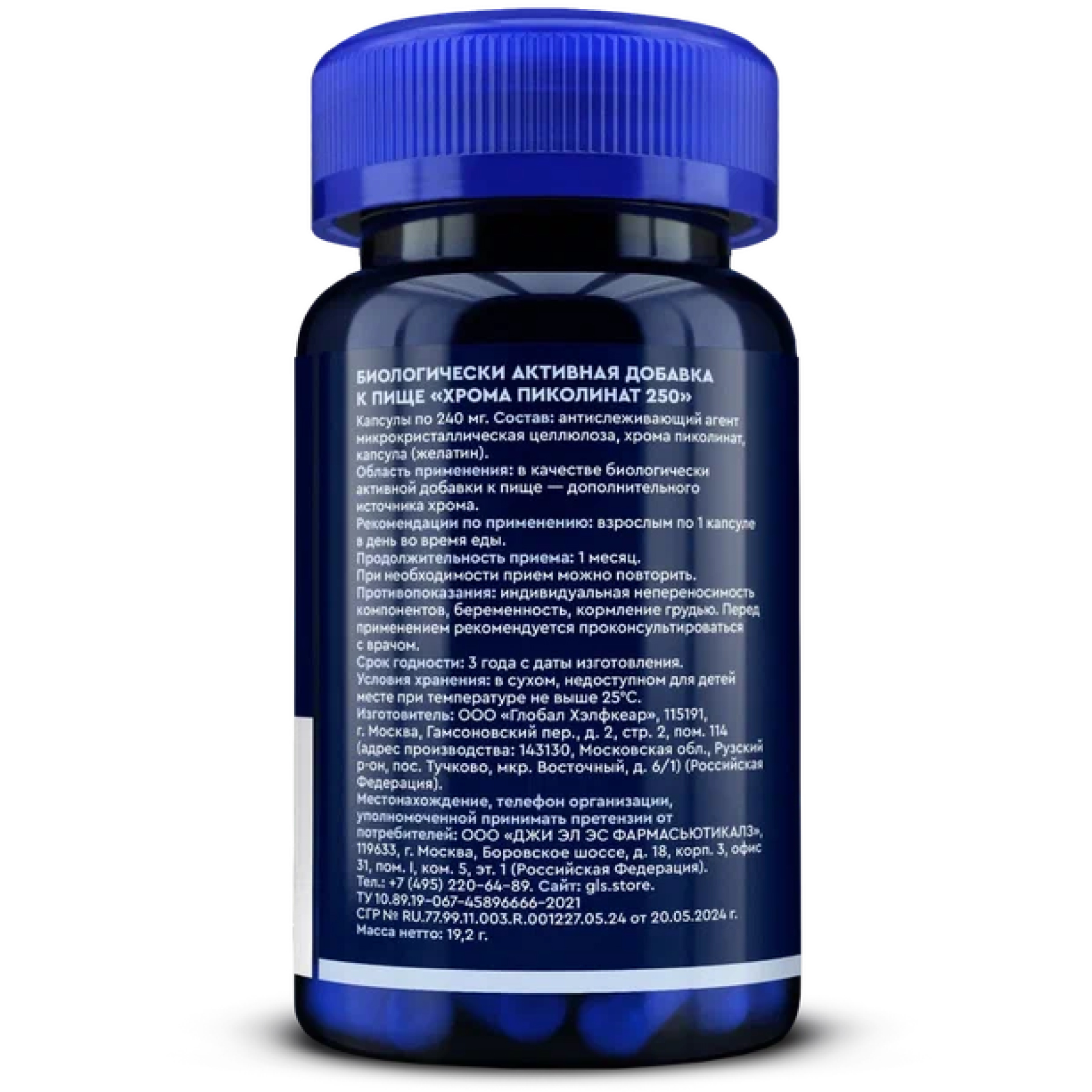 Хрома пиколинат - легкоусвояемая форма хрома, принимает участие в регуляции углеводного и жирового обмена.