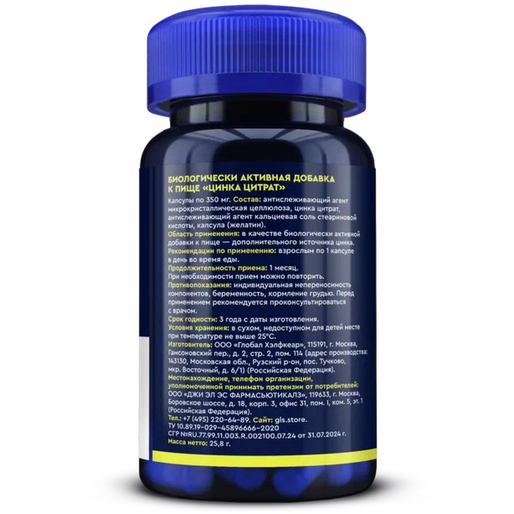 Цинк (из цинка цитрата) — 25 мг.
