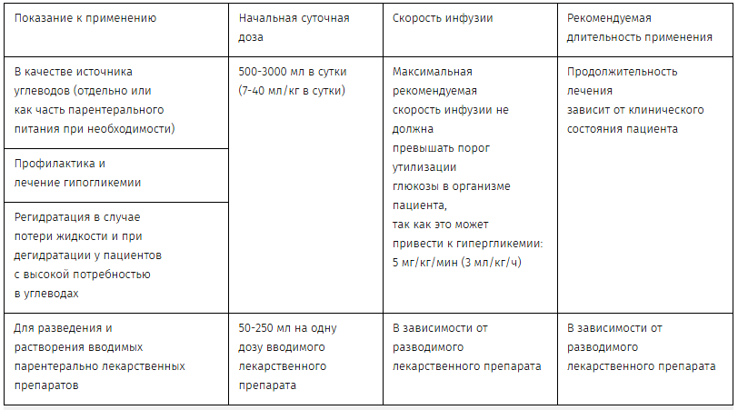 Максимальная скорость инфузии не должна превышать порог утилизации глюкозы в организме пациента, так как это может привести к гипергликемии.