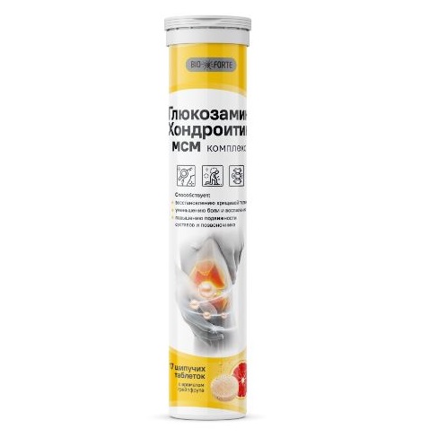 Регуляторы кислотности (кислота лимонная безводная, натрия гидрокарбонат), кальция карбонат, глюкозамина гидрохлорид, метилсульфонилметан, хондроитина сульфат натрия, носитель сорбит, стабилизатор полиэтиленгликоль, подсластитель сукралоза, ароматизатор «Грейпфрут», марганца сульфат, краситель бета-каротин, стабилизатор поливинилпирролидон (повидон К 30), холекальциферол.