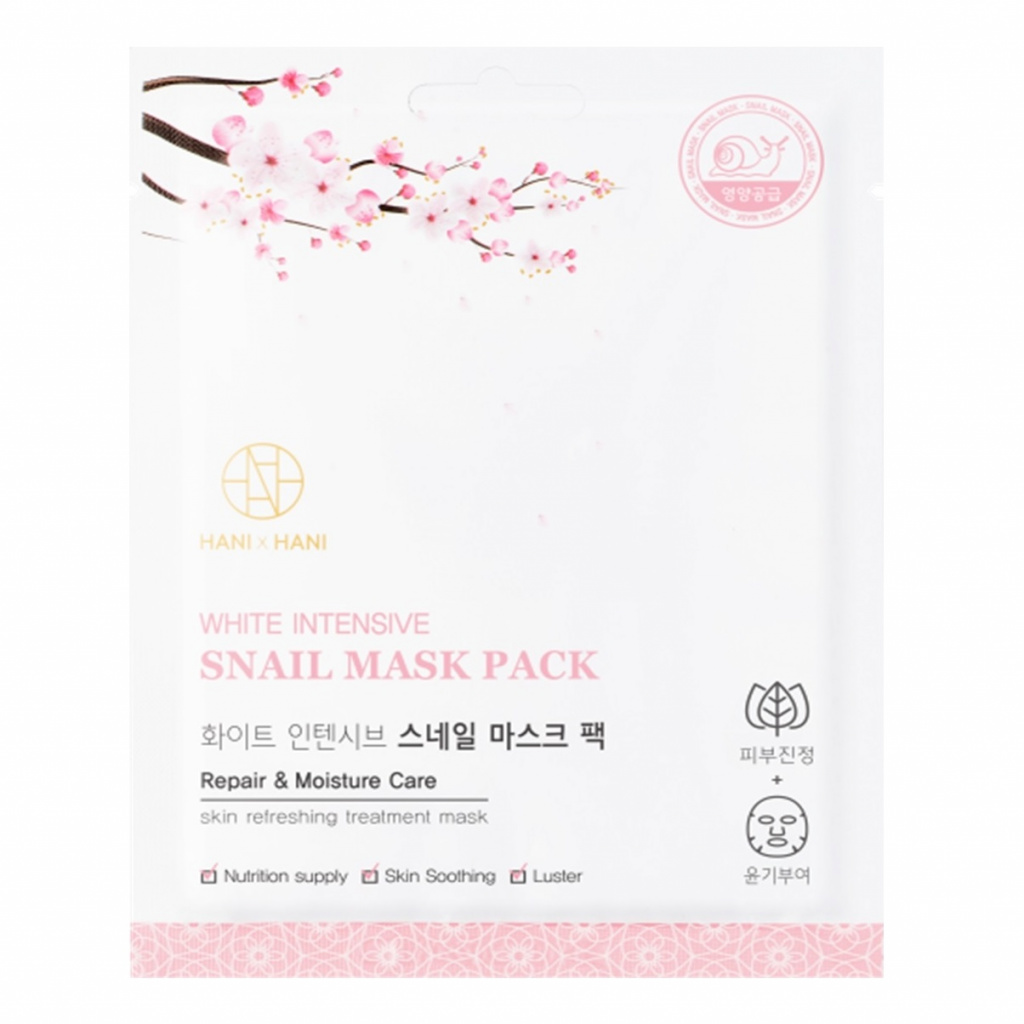 Тканевая маска White Intensive Snail Mask Pack от южнокорейского бренда HANI X HANI ― высокоэффективный ухаживающий продукт, формула которого обогащена муцином улитки и другими натуральными компонентами.