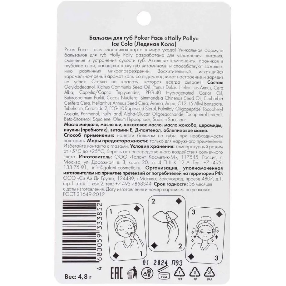 Уникальная формула бальзама для губ Holly Polly «Ледяная кола» разработана для увлажнения, питания, смягчения и устранения сухости губ. Активные компоненты, проникая в глубокие слои, насыщают кожу губ витаминами и способствуют заживлению различных микроповреждений.