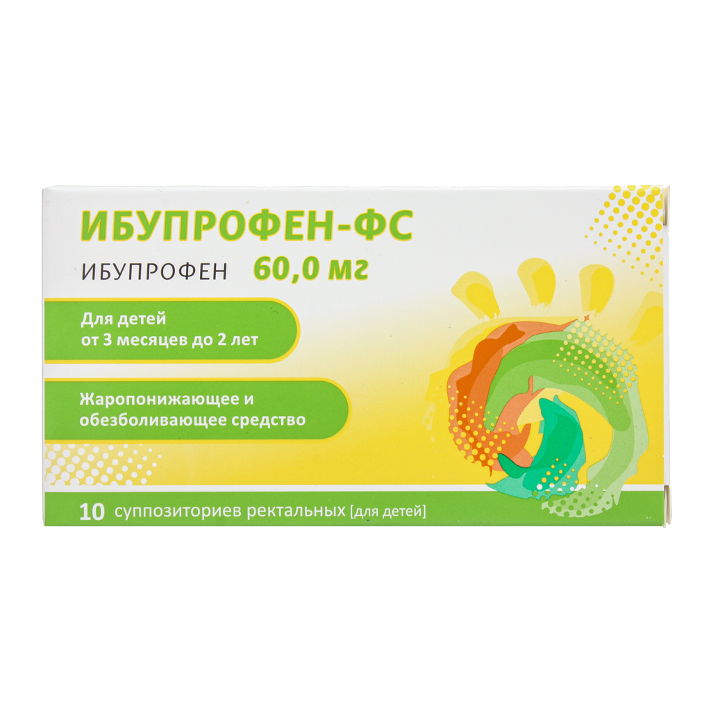 Суппозитории ректальные Ибупрофен-ФС, 60 мг, применяют у детей в возрасте от 3 месяцев до 2 лет для симптоматического лечения в качестве жаропонижающего средства при острых респираторных заболеваниях (в том числе при гриппе), детских инфекциях, других инфекционно-воспалительных заболеваниях и постпрививочных реакциях, сопровождающихся повышением температуры тела.