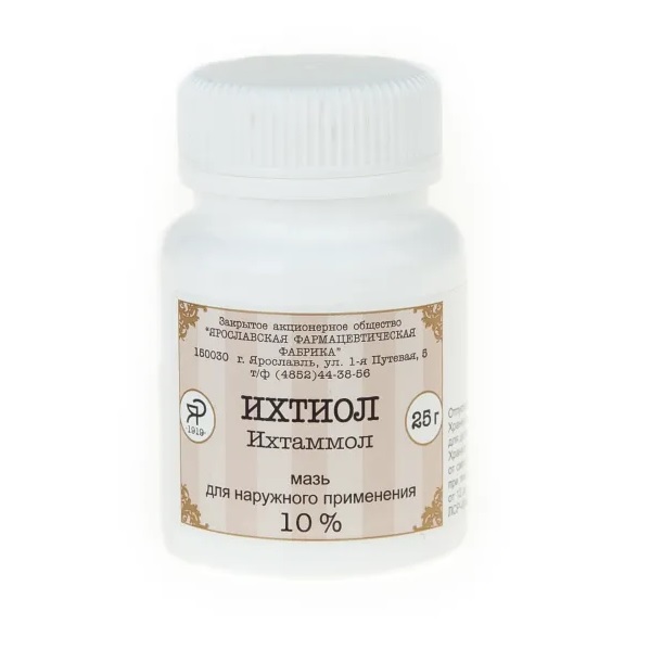 Активное вещество: ихтаммол (ихтиол) 10,0 г или 20,0 г.