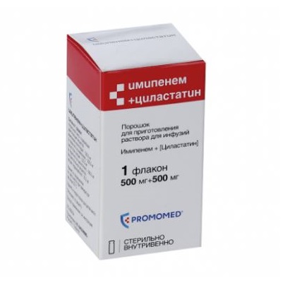 Связывание с белками плазмы имипенема - 20%, циластатина - 40%. Cmax имипенема при в/в введении в дозе 250, 500 или 1000 мг в течение 20 мин - 14-24, 21-58 и 41-83 мкг/мл соответственно; при в/м введении 500 или 750 мг - 10 и 12 мкг/мл соответственно. Cmax циластатина при в/в введении в дозе 250, 500 или 1000 мг в течение 20 мин - 15-25, 31-49 и 56-80 мкг/мл; при в/м введении 500 или 750 мг - 24 и 33 мкг/мл соответственно.
